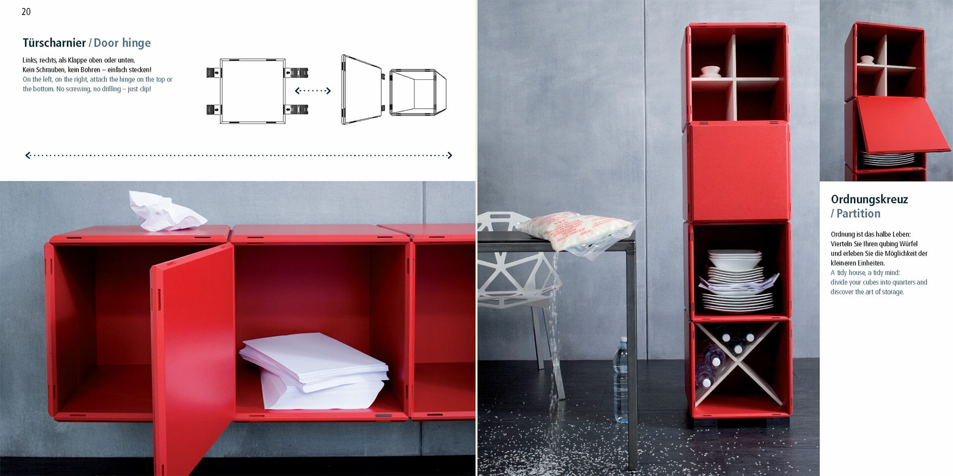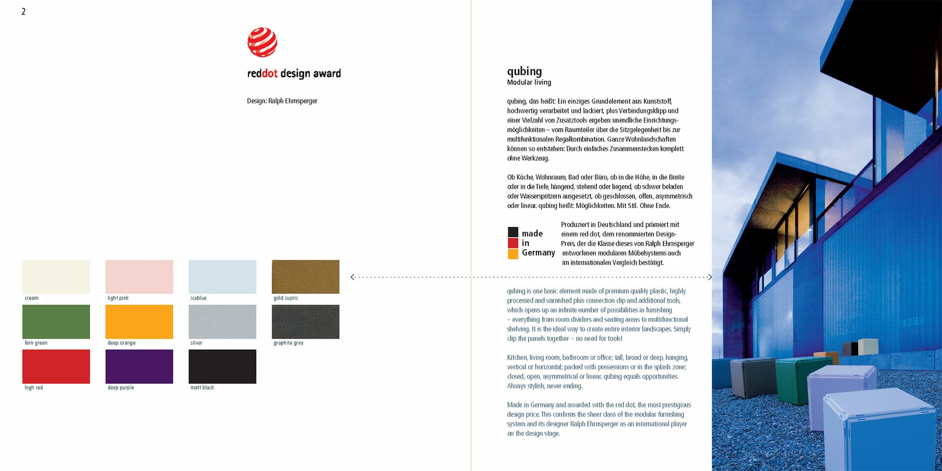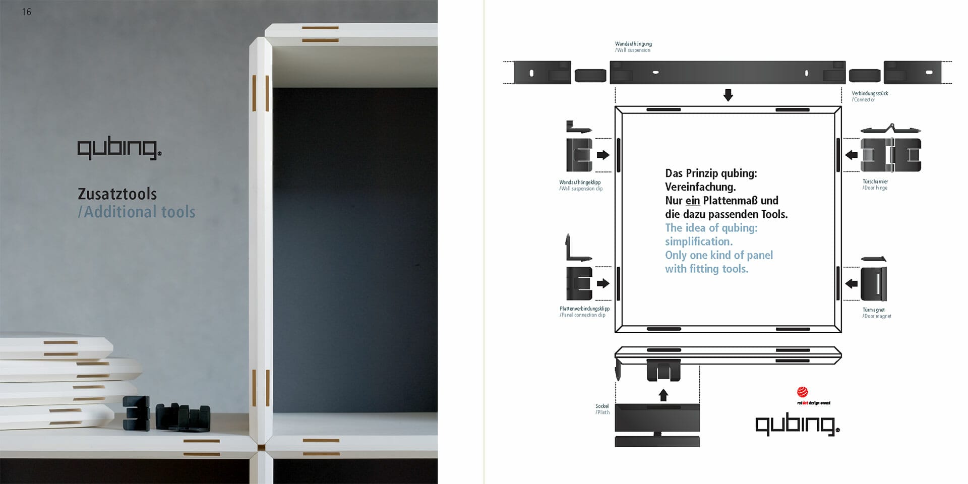 qubing ist ein mit dem red dot Award ausgezeichnetes, modulares Möbelsystem, bestehend aus farbigen Kunststoffpanels, die frei kombiniert und mit verschiedenen Zusatztools ergänzt werden können. So entstehen Regale, Sitzgelegenheiten, Counter bis hin zu kompletten Messeständen in beliebiger Formen- und Farbenvielfalt.