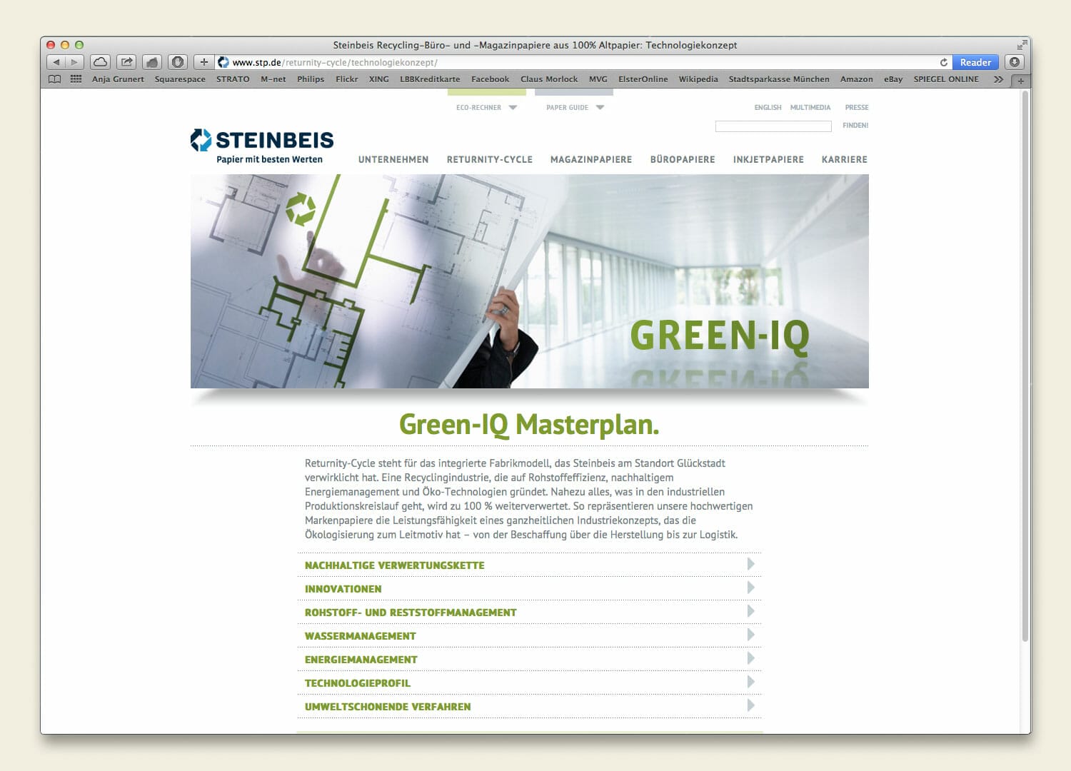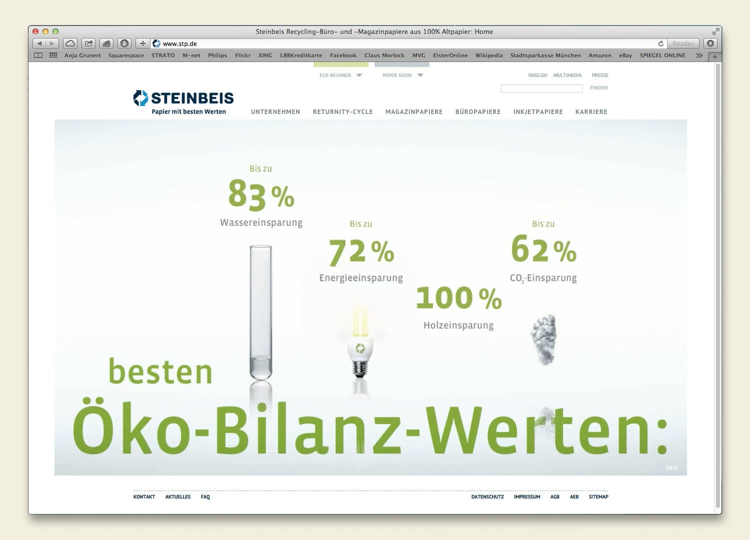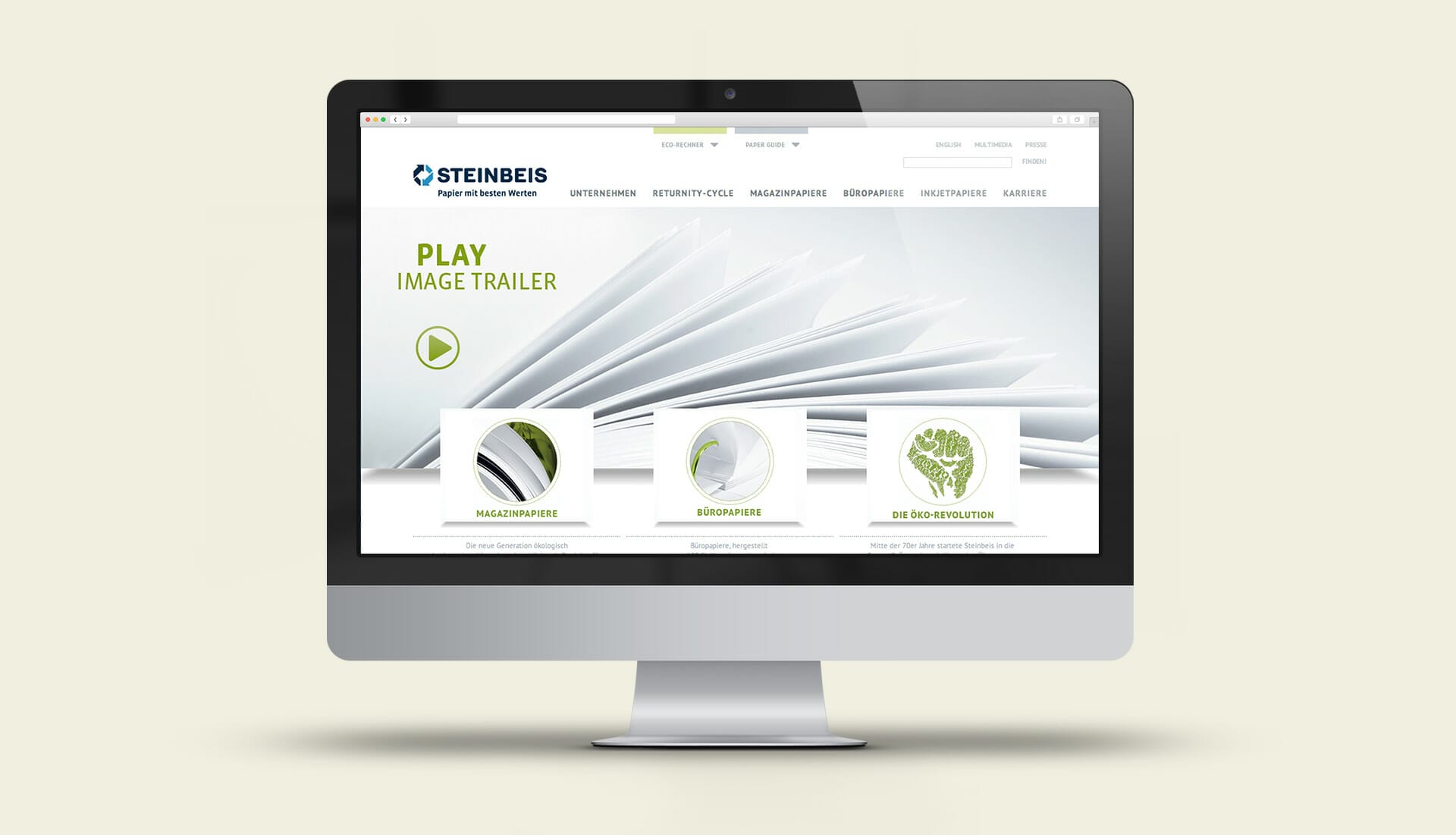 Die konsequente Weiterentwicklung des Erscheinungsbildes beinhaltete einen Relaunch der Steinbeis Website, um dem Öko-Pionier der Recyclingpapierbranche einen zeitgemäßen Internetauftritt zu geben. Dabei wurde besonders Wert gelegt auf Nutzerfreundlichkeit, mit einer übersichtlichen Aufbereitung der komplexen Informationshäppchen, aussagekräftigen Bildwelten und sinnvollen Zusatztools wie Bewerbungscenter, Call-Back-Funktion, Eco Rechner und Paper Guide. Das Grundkonzept der Website stammt vom Berliner Designer Dominik Ziller.